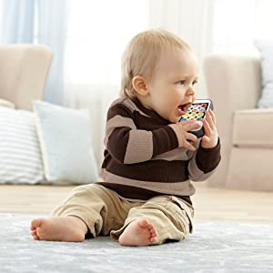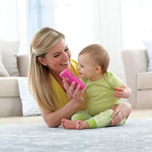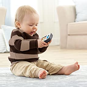 Simply pressing the buttons and moving the slider on the Laugh & Learn Smart Phone help exercise baby’s fine motor skills and eye-hand coordination. The bright colors, music, lights, phrases and sounds help stimulate baby’s developing visual and auditory senses. Talking on the phone with ‘friends’ helps foster communication and early role play skills.
