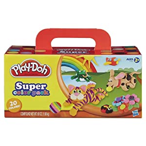 | This big pack of 20 cans of Play-Doh modeling compound holds an endless array of creative possibilities! Little hands can roll, twist and shape these colors into any form that strikes their fancies, then mash them up and start all over. Perfect for play dates and parties, the Super Color Pack is just the ticket for big Play-Doh fun! Includes 20 cans of Play-Doh compound Super Color pack has Play-Doh modeling compound for little hands Ages 2 and up Play-Doh and all related characters are trademarks of Hasbro.